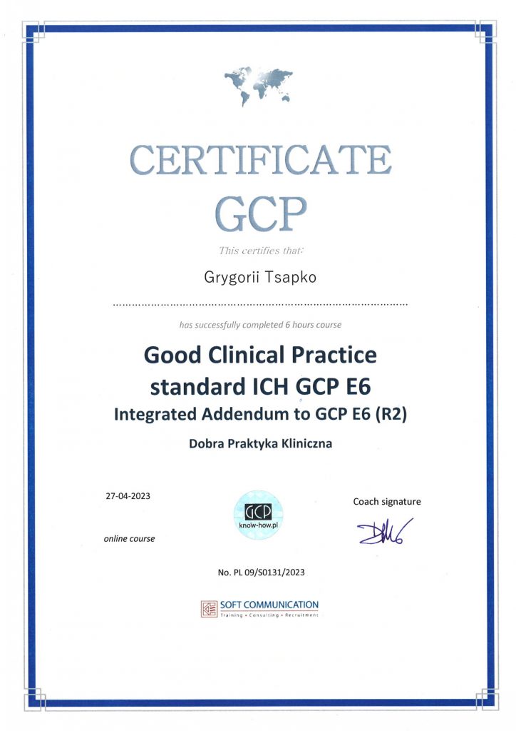 23-24.03.2017 Training program “Clinical trials of drugs of a pharmaceutical company” GCP LLC “Pharmagate Plus”, Kiev, Ukraine